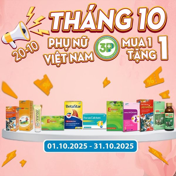 Tháng của nàng - Deal ngập tràn! Săn sale xuyến suốt tháng 10 từ hệ thống Nhà Thuốc 3P: với ưu đãi mua 1 tặng 1...