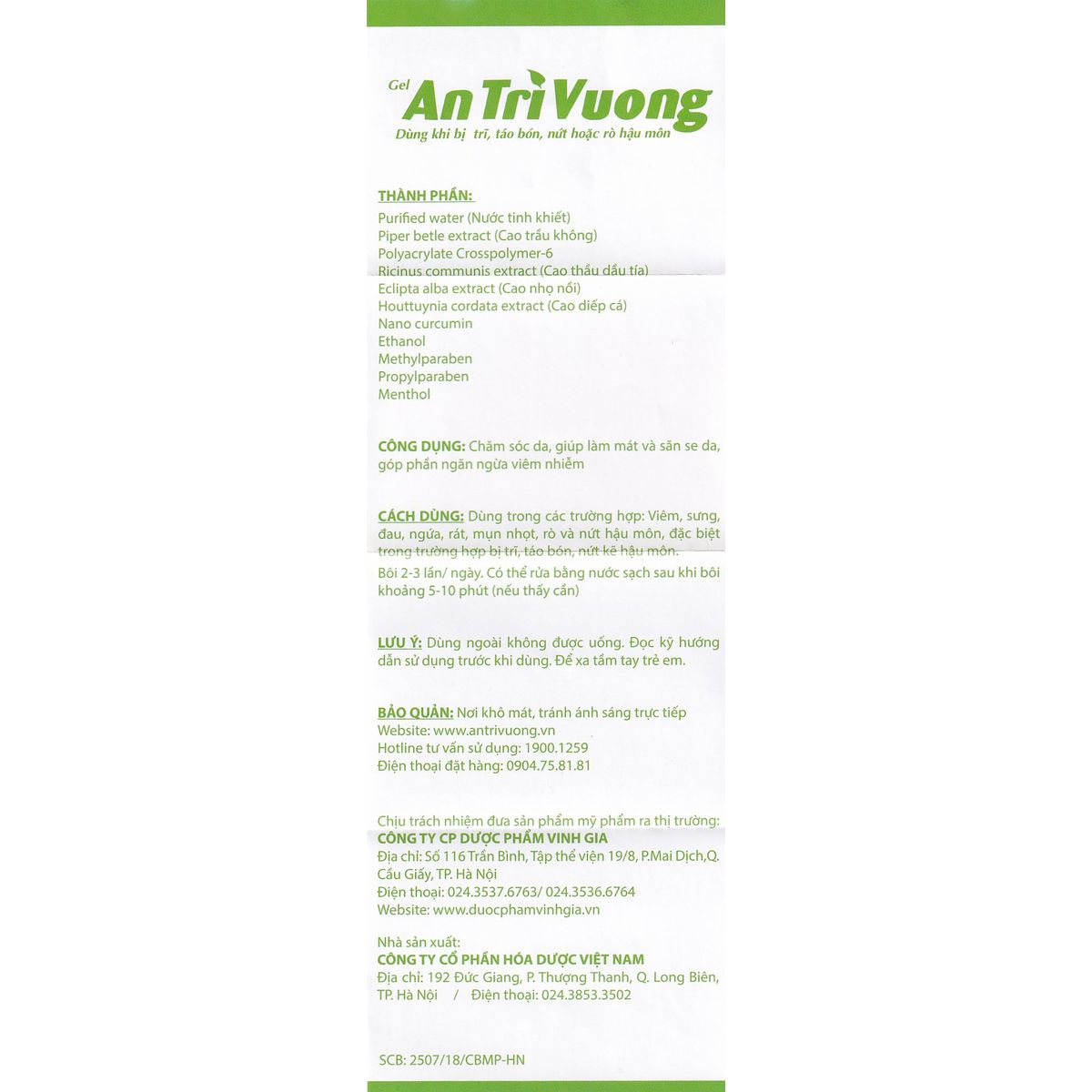 An Trĩ Vương Gel chăm sóc da, giúp làm mát và săn se da, góp phần ngăn ngừa viêm nhiễm.