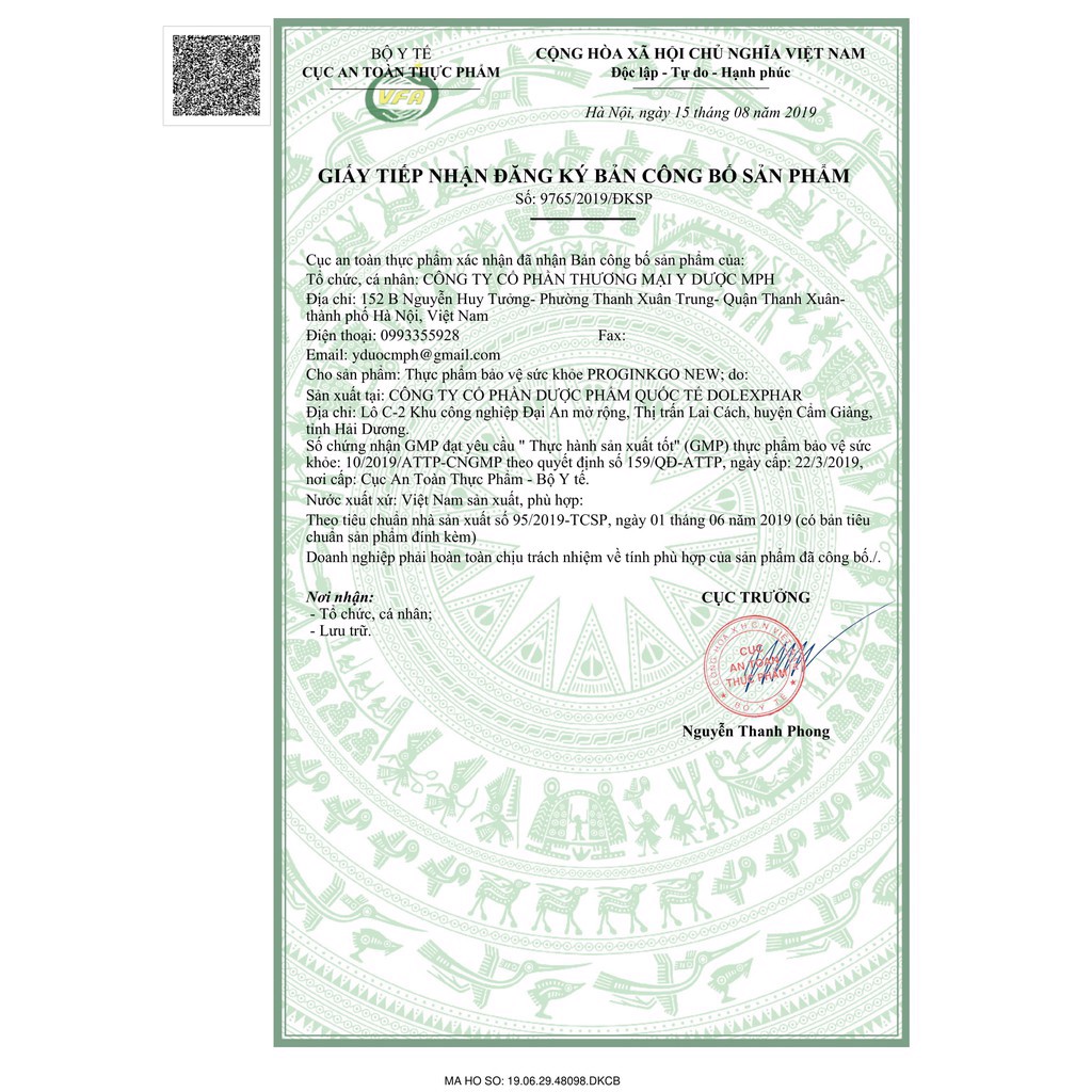 ProginkgoNew là sản phẩm bổ não với chiết xuất 100% thiên nhiên, chiết xuất từ các thảo dược “vàng” cho sức khỏe não như Coenzyme Q10, cao bạch quả và các vitamin.