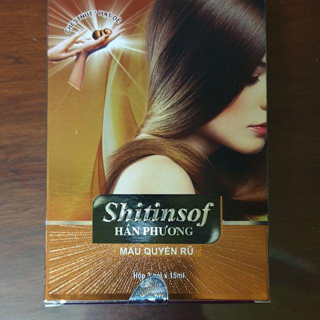 Sản phẩm nhuộm tóc Shitinsof Hán Phương màu quyến rũ chứa công thức độc đáo giúp tóc dễ lên màu, đúng màu và bền màu kết hợp chiết xuất từ các thành phần chiết xuất từ sâm, linh chi, bạch quả, trà xanh, hà thủ ô đỏ, gừng, nước, tinh dầu thơm, vitamine B5...