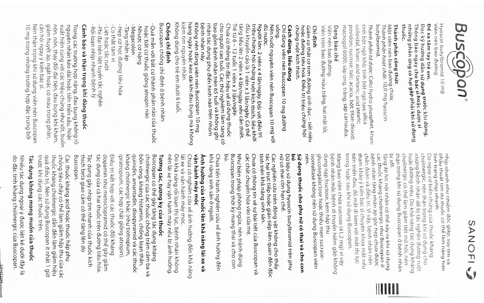 Nhiều tác dụng ngoại ý được liệt kê dưới đây là do đặc tính kháng cholinergic của Buscopan. Tác dụng phụ kháng cholinergic của Buscopan nhìn chung nhẹ và tự khỏi.