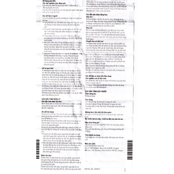 Tác dụng giãn mạch của amlodipine xảy ra từ từ, do đó rất hiếm khi bị hạ huyết áp cấp sau khi dùng thuốc.