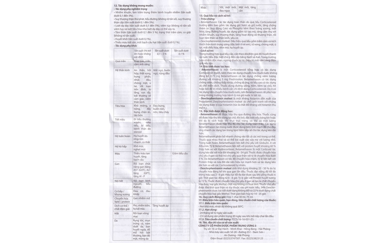 Mẫn cảm với Betamethason hoặc các Corticoid khác và Dexclorpheniramin.