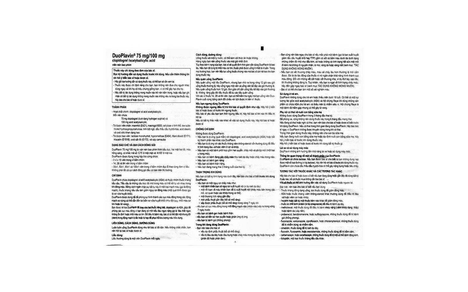 Tờ Hướng dẫn sử dụng thuốc DuoPlavin® 75mg/100mg.