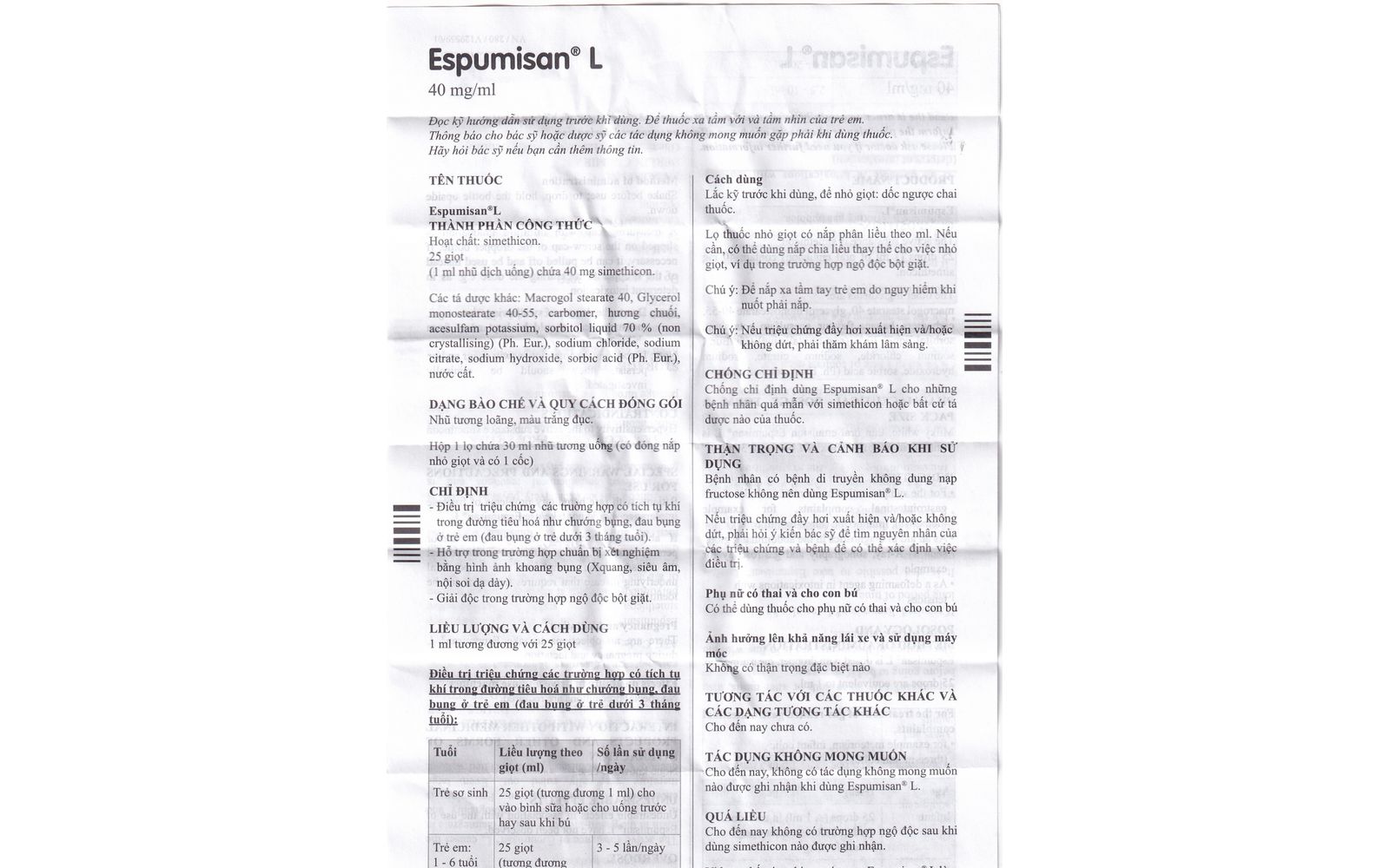 Cho đến nay không có tác dụng không mong muốn nào được ghi nhận khi dùng Espumisan® L.
