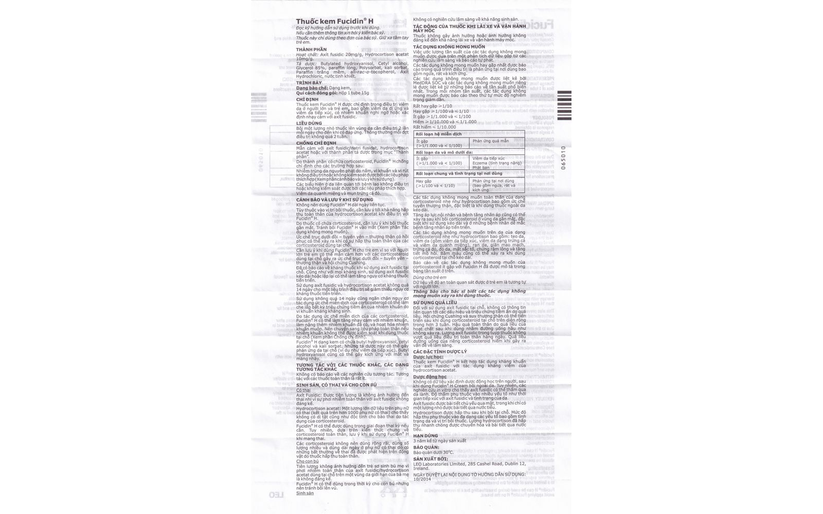 Fucidin® H dạng kem có chứa butyl hydroxyanisol, cetyl alcohol và kali sorbat. Những tá dược này có thể gây phản ứng da tại chỗ (ví dụ nhữ viêm da tiếp xúc). Butyl hydroxyanisol cũng có thế gây kích ứng với mắt và màng nhày.