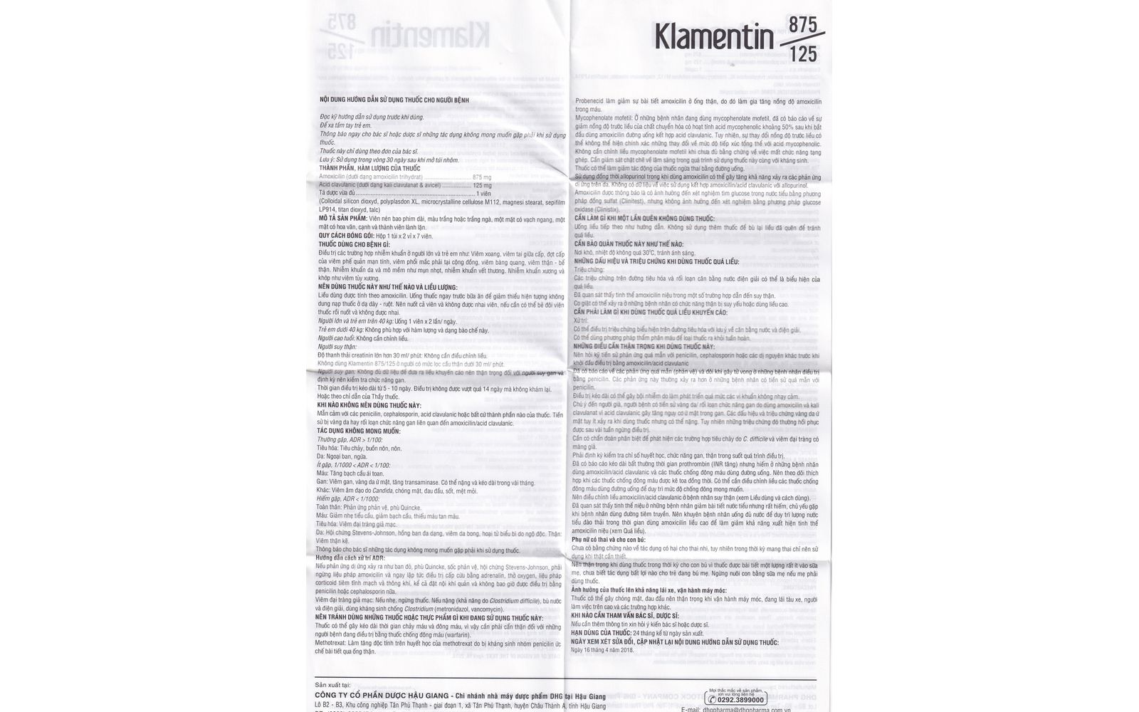 Thành phần của Thuốc Klamentin 875/125