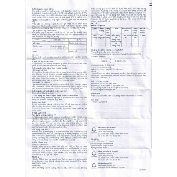 Chưa có thông báo về trường hợp quá liều acid tranexamic. Những triệu chứng quá liều có thể là: Buồn nôn, nôn, các triệu chứng và/hoặc hạ huyết áp tư thế đứng.