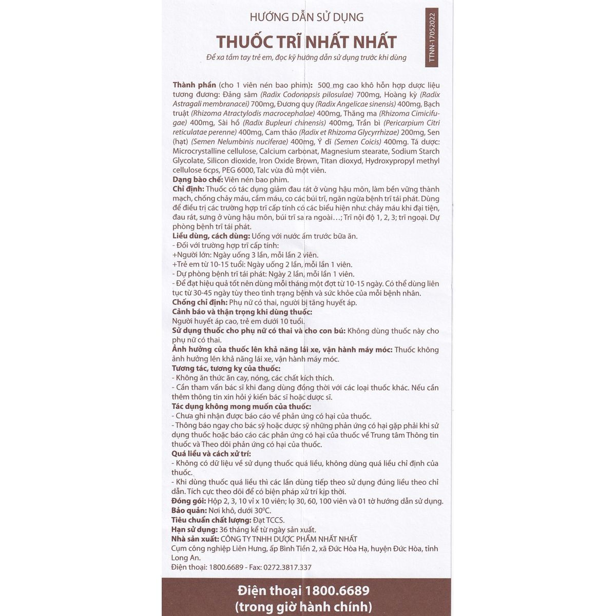 Thuốc Trĩ Nhất Nhất là thuốc điều trị, không phải là thực phẩm bảo vệ sức khỏe