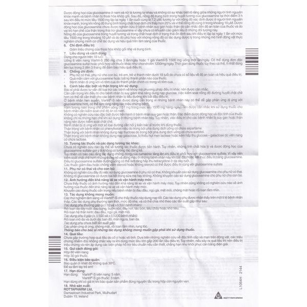 Lưu ý của Thuốc Viartril-S 1500Mg