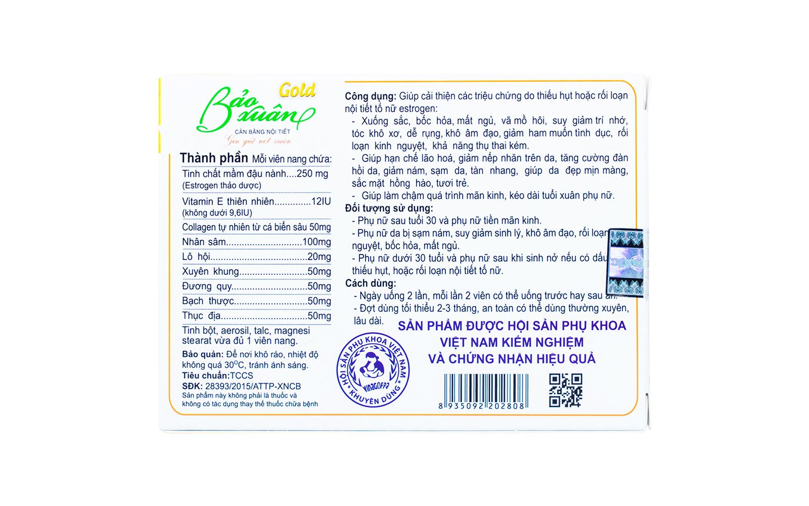 Thành phần của Viên uống Bảo Xuân Gold