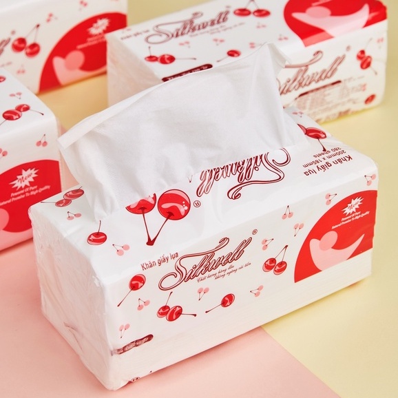✪ Khăn giấy rút silkwell 280 tờ Cherry đỏ được làm từ bột giấy nguyên chất 100%, kết hợp với dây chuyền sản xuất khép kín đạt tiêu chuẩn an toàn tại Việt Nam, đã cho ra đời loại giấy ăn trắng, dai, mềm mịn.
